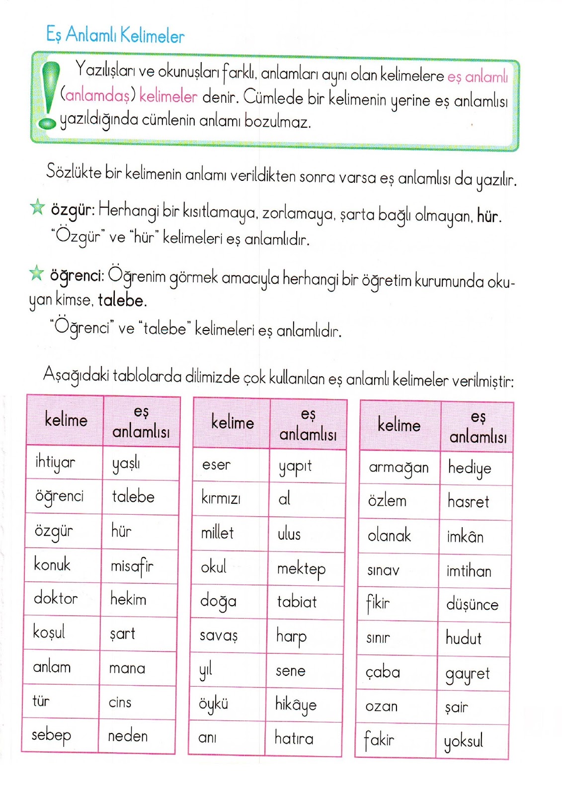 4) 3.Sınıf Türkçe Eş Anlamlı Kelimeler Etkinlikleri Sınıf, Eğitim, Okuma