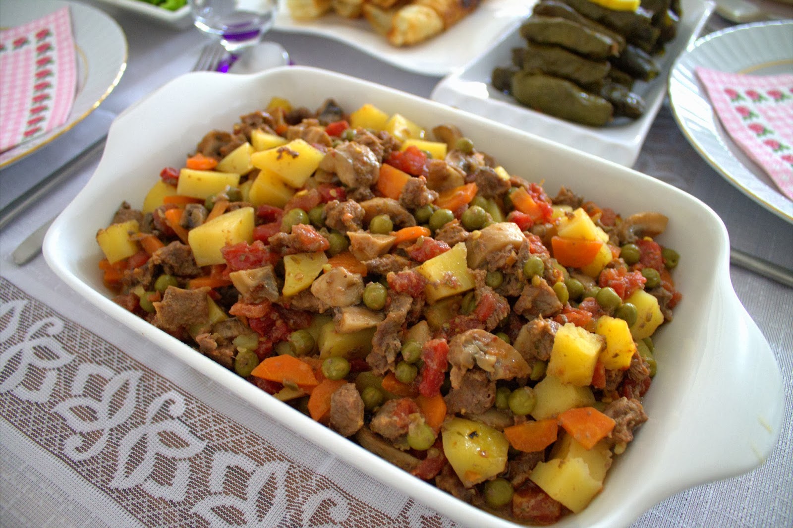Ev kebablar öğle yemeği tv yapilan bütün yemekleri̇m yarin ne yemek var yeni̇ tari̇fler karışık etli kağıt kebab. Kuşbaşı dana eti 2 havuç 2 patates 1 su bardağı bezelye 20 arpacık soğanı 4 yemek kaşığı zeytinyağı 1 yemek kaşığı domates salçası 2 domates 1 su bardağı su 1. Bezelyeleri ekleyip 5 dakika kadar.