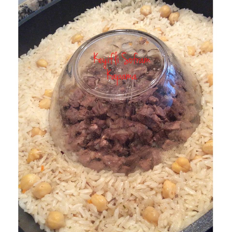 Altta nohutlu soğanlı nefis bir pilav, üstünde kuşbaşı etler ve çeri domateslerle bezenmiş nefis bir ana yemek. Ancakkkk kapama�nın hası etli kapamadır. İçerisine sıcak su döküp, tuz ekleyin ve pişirmeye bırakın.